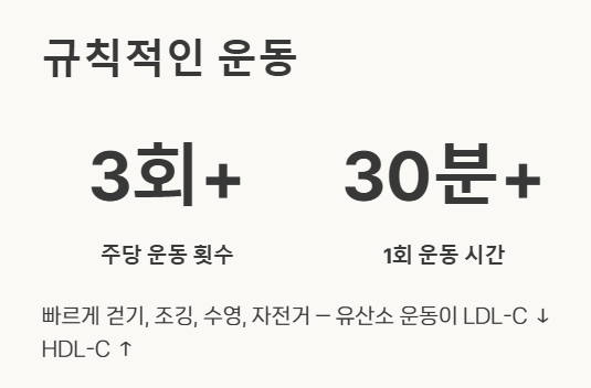 꾸준한 신체 활동은 LDL-C 수치를 낮추고, 반대로 HDL-C 수치를 높이는 데 아주 효과적이에요.