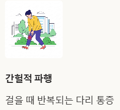 특히 걸을 때 다리 통증이 나타나는 간헐적 파행도 중요한 신호입니다.