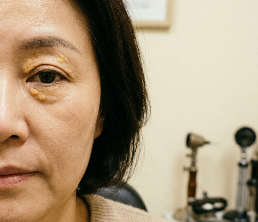 눈꺼풀 안쪽이나 바깥쪽에 생기는 노란색을 띠는 작은 반점으로, 얼핏 보면 기미나 다크서클 같기도 해서 놓치기 쉽죠. 이 황색종은 콜레스테롤이 피부 아래에 침착되어 생기는 것으로, 특히 고콜레스테롤혈증과 밀접한 관련이 있다고 알려져 있습니다.