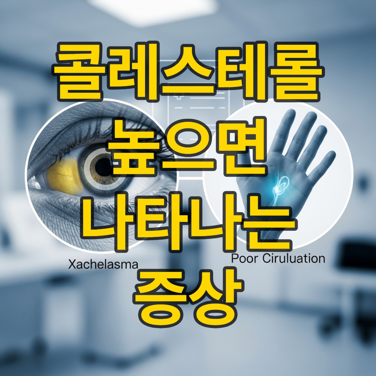 - ✔️ 눈꺼풀 황색종, 각막 주변 흰 테두리, 손발 저림/통증 등은 고콜레스테롤의 비특이적 초기 증상일 수 있습니다.