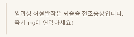 일과성 허혈발작은 뇌졸중의 전조증상으로, 뇌졸중과 같은 증상이 일시적으로 나타났다가 사라지는 것을 말해요. 이런 증상이 나타나면 정말 위급한 상황이니, 지체 없이 119를 부르거나 응급실로 가셔야 합니다.