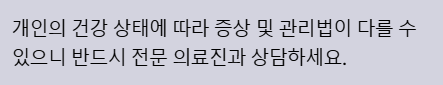 *개인의 건강 상태에 따라 증상 발현 및 관리법이 다를 수 있으니 반드시 전문 의료진과 상담하세요.
