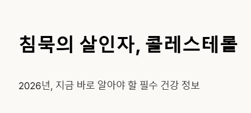 높은 콜레스테롤은 초기 증상이 없어 '침묵의 살인자'라 불리며, 정기 검진이 필수입니다.