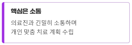 중요한 것은 의료진과 긴밀히 소통하며 개인에게 맞는 치료 계획을 세우는 것이에요.