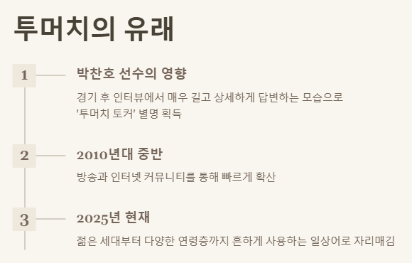 ✔️ 박찬호 선수의 '투머치 토커' 일화가 단어 대중화에 큰 영향을 주었어요.
