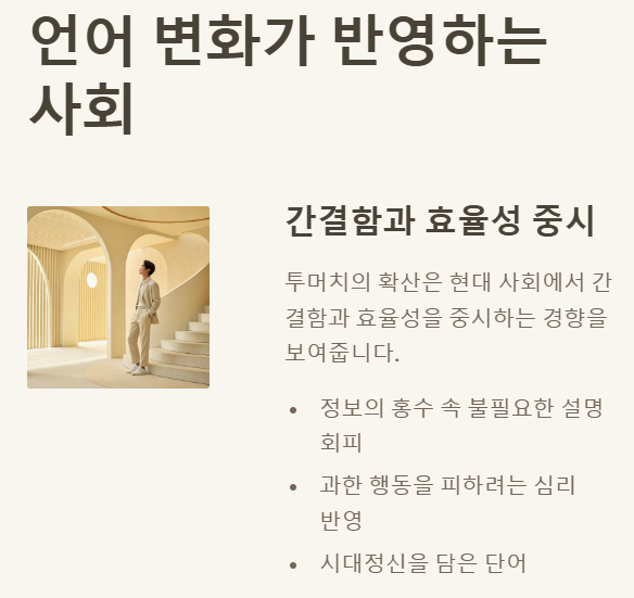 ※ 현대인의 빠르고 효율적인 소통을 반영하는 '투머치', 적절히 활용하여 스마트한 대화를 이끌어 보세요!