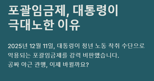 - ✅ 대통령, 포괄임금제를 '청년 노동 착취 수단'으로 강력 비판.