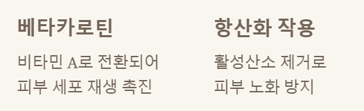 ✅ 피부 미용 및 항산화: 베타카로틴과 비타민이 피부 건강 유지 및 노화 방지에 기여해요.