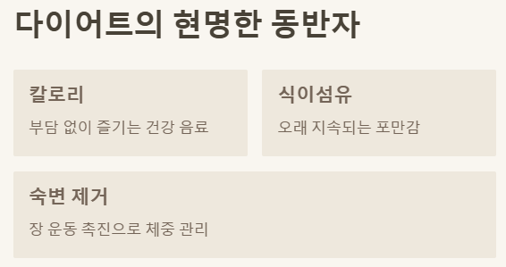 ✅ 소화 및 장 건강 증진: 풍부한 식이섬유가 원활한 소화와 변비 예방에 도움을 줘요.