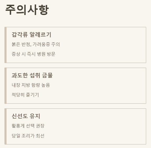 • ✅ 갑각류 알레르기와 과도한 섭취는 주의, 활홍게를 선택하면 신선도 UP!
