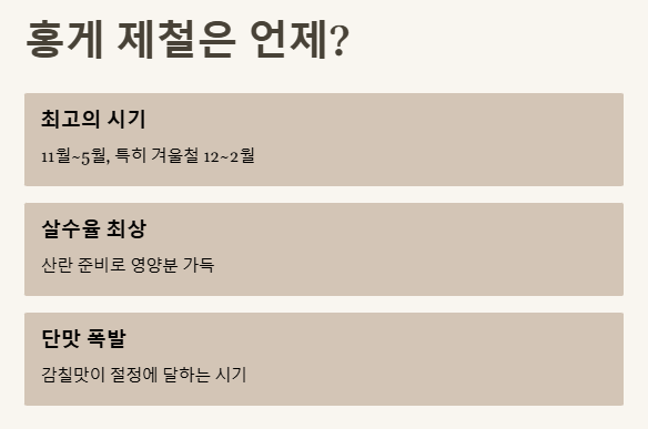 • ✅ 2025년 홍게 제철은 11월부터 5월, 특히 겨울이 살수율과 맛이 최고!