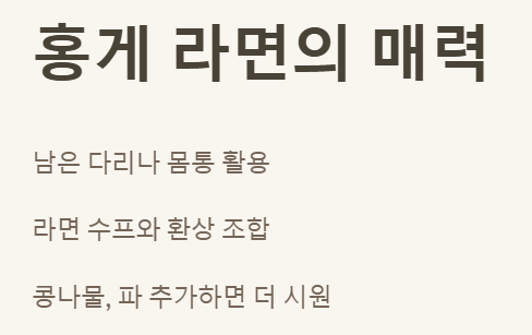 홍게를 먹고 남은 다리나 몸통, 혹은 살수율이 조금 떨어지는 홍게를 활용해 라면을 끓여보세요. 라면 수프의 감칠맛과 홍게의 시원한 맛이 어우러져 정말 환상적인 맛을 자랑합니다. 여기에 콩나물이나 파를 더하면 더욱 시원하고 풍성한 맛을 즐길 수 있어요. 개인적으로 라면 끓이는 동안 냄새 때문에 너무 힘들어요! 이건 진짜... 먹어본 사람만 아는 맛이죠.