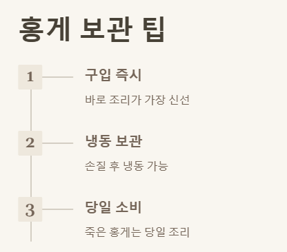 - ✅ 신선한 홍게는 선명한 껍질, 묵직한 무게, 활발한 다리를 확인하세요.