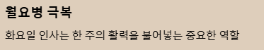 • "월요일이 가고 화요일이 왔으니, 이제 수요일 목요일 금요일 주말까지 쭈욱 달려볼까요? 🏃‍♀️"