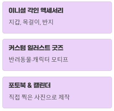 이니셜이 각인된 액세서리나 지갑, 특별한 날짜가 새겨진 작은 액자, 아니면 그녀의 반려 동물이나 좋아하는 캐릭터를 모티프로 한 커스텀 일러스트 굿즈도 좋은 선택이에요.
