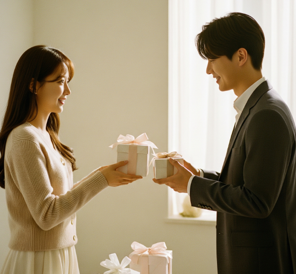 선물을 건넬 때는 진심을 담은 짧은 멘트가 효과적이에요.