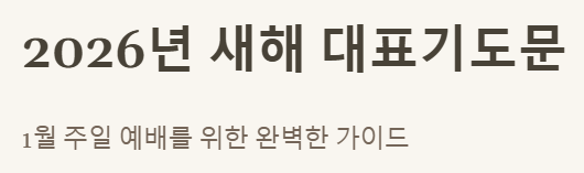 2026년 1월, 새해를 시작하는 주일 예배가 주님 안에서 더욱 풍성하고 은혜롭기를 기도합니다. 이 기도문 예시들이 여러분의 귀한 섬김에 작은 도움이 되었으면 정말 좋겠습니다. 감사합니다!