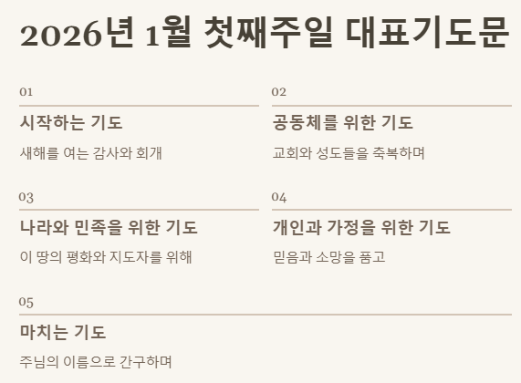 🙏 2026년 1월 첫째주일 대표기도문 예시 (전체)