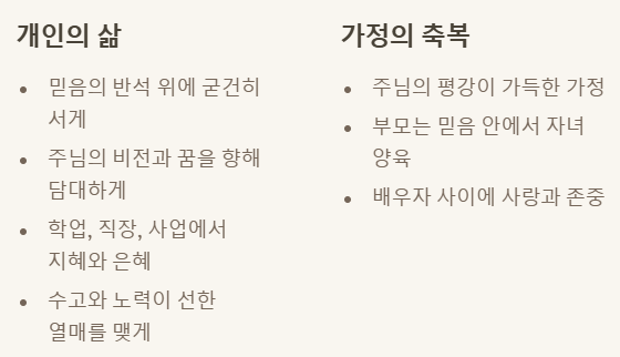 - ✅ 감사, 회개, 공동체, 나라, 개인/가정의 순서로 기도문을 구성하는 것이 좋습니다.