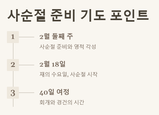 (2026년 사순절은 2월 18일 재의 수요일부터 시작되므로 2월 둘째 주는 사순절 준비에 해당) 기도문 작성 시 이 부분을 염두에 두면 더욱 풍성한 내용이 될 거예요.