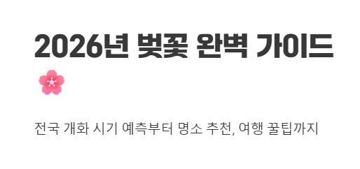 1. 2026년 벚꽃, 언제 피고 질까요? 주요 개화 시기 예측