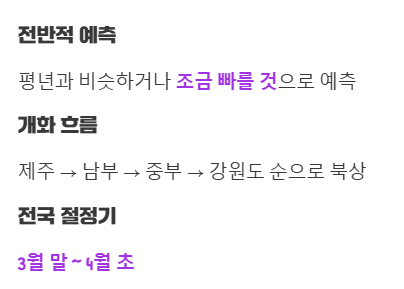 | 지역 | 개화 예상일 | 만개 예상일 |