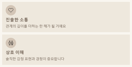 📌 조언: 관계에서 가장 중요한 것은 진솔한 대화와 경청입니다. 상대방의 입장을 이해하려 노력하고, 자신의 감정을 솔직하게 표현하는 것이 깊은 유대감을 형성하는 데 도움이 될 거예요.