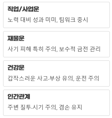 재물운: 금전적인 손실이나 사기 피해에 특히 주의해야 합니다.