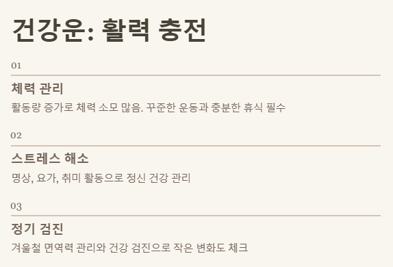 건강이 뒷받침되어야 다른 운들도 빛을 발할 수 있으니까요.