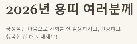 용띠 여러분, 2026년 한 해 동안 건강하시고, 뜻하시는 모든 일들이 순조롭게 풀리시기를 진심으로 응원합니다!