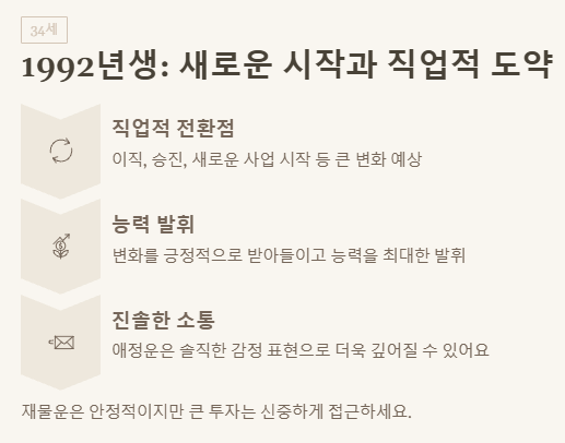 1992년생 (34세): 새로운 시작과 직업적 도약