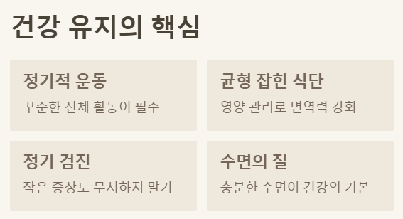 정기적인 운동과 균형 잡힌 식단은 건강을 유지하는 데 필수적입니다.