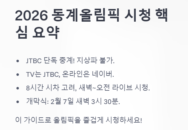 - 2026 동계올림픽은 JTBC 단독 중계! 지상파 3사에서는 시청할 수 없습니다.