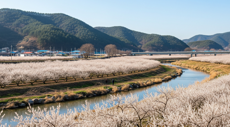 섬진강을 따라 끝없이 펼쳐진 매화밭은 정말 장관이에요.