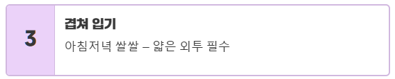 따뜻한 차림: 3월 초중순은 아직 아침저녁으로 쌀쌀할 수 있어요.