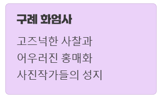 특히 화엄사 경내의 홍매화는 그 자태가 너무 아름다워서 많은 사진작가들이 찾는 명소이기도 합니다.