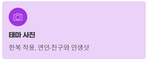 한복을 입고 찍거나, 사랑하는 사람과 함께 찍으면 더욱 멋진 인생샷을 얻을 수 있을 거예요.