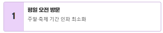 일찍 방문하기: 인기 명소는 주말이나 축제 기간에 매우 혼잡합니다.