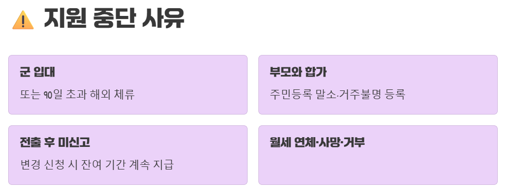 ✔️ 월세 연체, 대상자의 사망, 또는 본인이 지원을 거부하는 경우 등