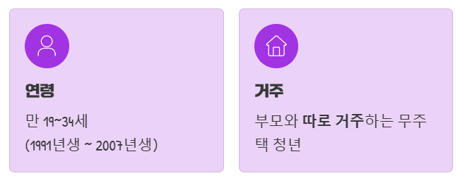 - ✅ 만 19~34세 무주택 청년 대상 (부모와 따로 거주) 소득·재산 기준 확인 필수.