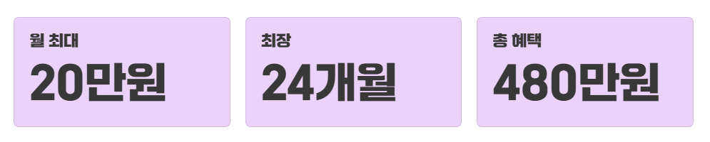 - ✅ 월 최대 20만원, 최장 24개월 지원! (총 480만원)