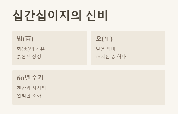 우리가 흔히 아는 12지신(자, 축, 인, 묘, 진, 사, 오, 미, 신, 유, 술, 해)과 함께, 천간(갑, 을, 병, 정, 무, 기, 경, 신, 임, 계)이 결합하여 60년 주기로 순환하는 것이 바로 십간십이지인데요. 2026년의 '병(丙)'은 오행 중 '화(火)'에 해당하며, 색깔로는 '붉은색'을 의미합니다. 그리고 '오(午)'는 당연히 '말'을 뜻하죠. 그래서 2026년은 '붉은 말의 해'가 되는 것이랍니다. 정말 흥미롭죠?