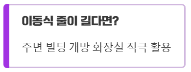 네이버지도나 카카오맵에서 '개방 화장실' 아이콘을 확인하고 빌딩 로비로 진입한 후, 1~5층 저층부 화장실을 이용하시면 됩니다.