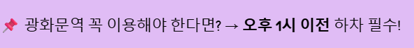 ✔️ 광화문, 시청, 경복궁역은 오후 2~3시부터 무정차 통과 및 출입구 폐쇄됩니다. 대체 역을 이용하거나 시간 계획을 잘 세우세요.