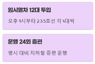 - 지하철 평시보다 운행 24회 증편