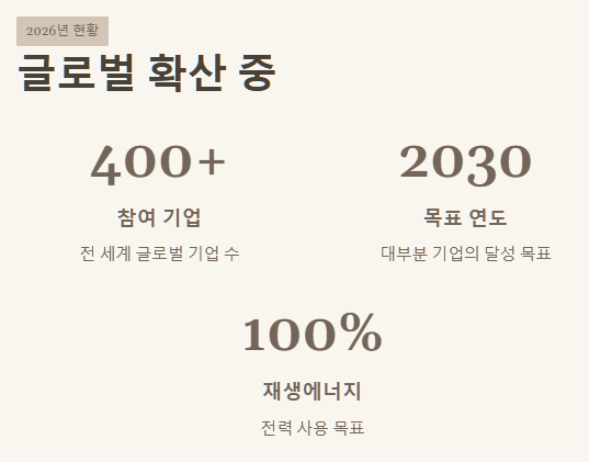 4. 2026년 현재 전 세계적 확산 중: 국내 기업들도 활발히 동참하며 재생에너지 전환의 물결에 합류하고 있습니다.
