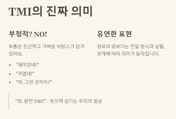 TMI, 언제 어떻게 써야 할까요? 🗣️